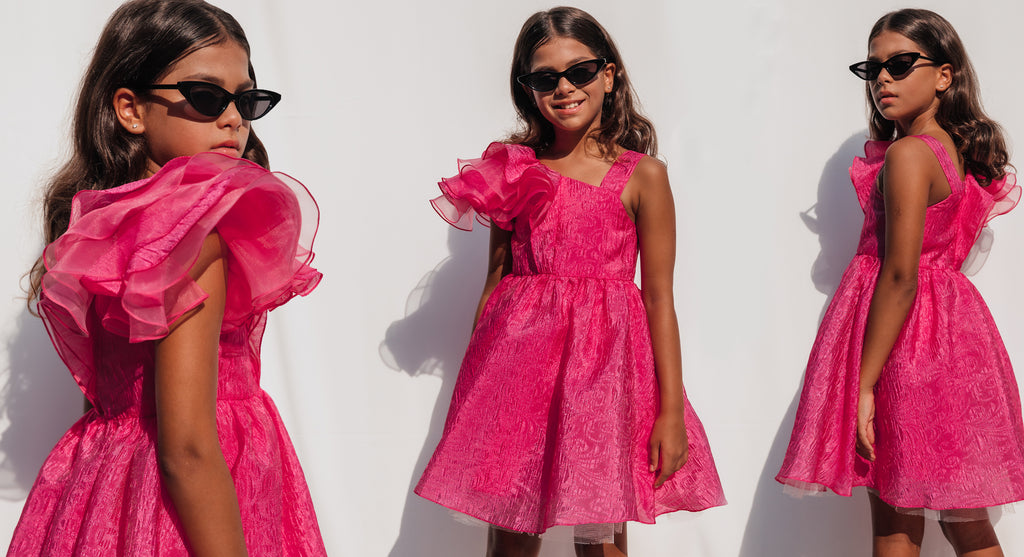 Fuşya Fırfır Şifon Elbise