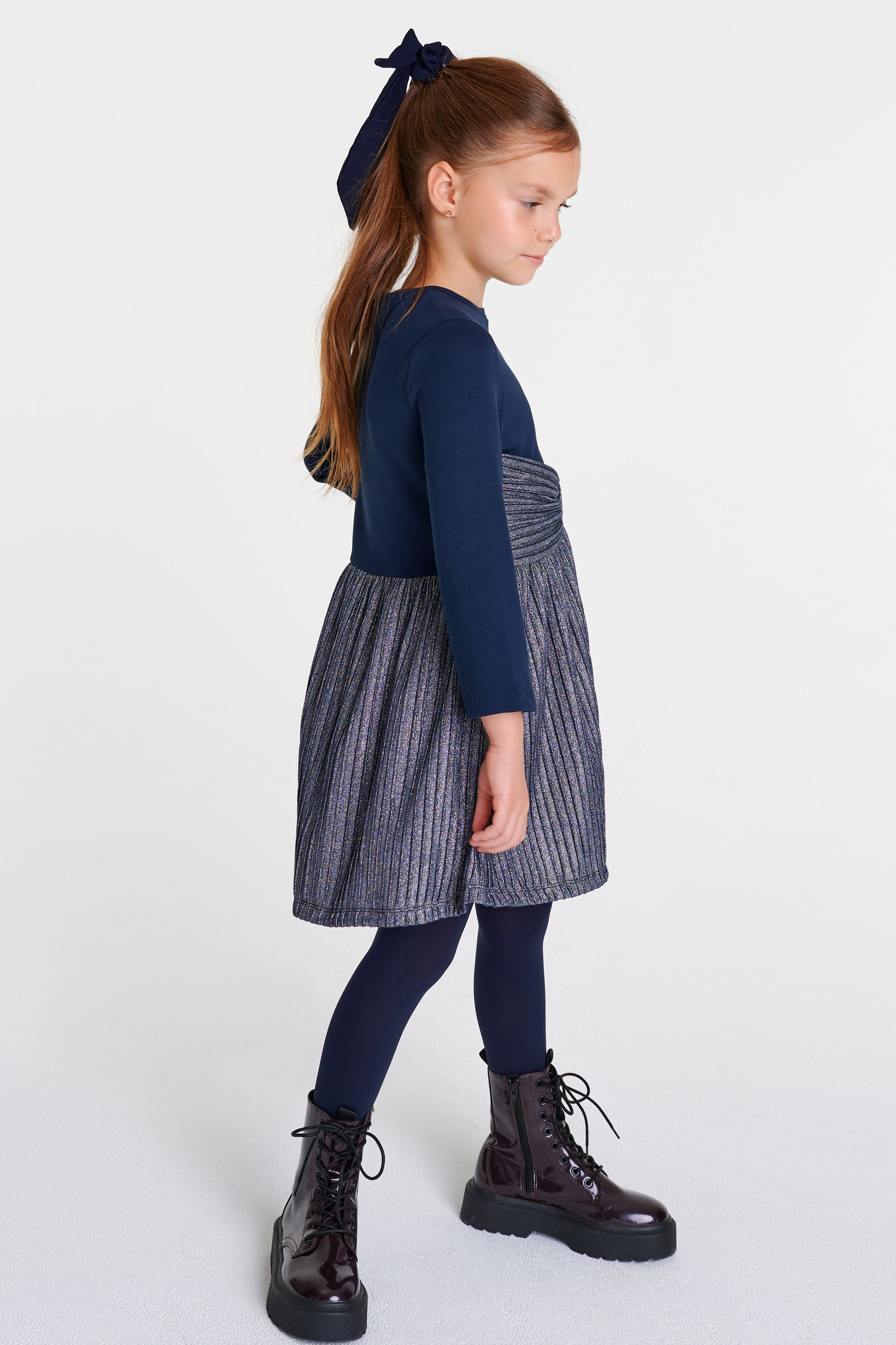 Üstü Örme Esnek Kumaştan Alt Kısmı Metalik Pileli Gümüş Varaklı Kumaştan Üretilmiştir. Astarsızdır.