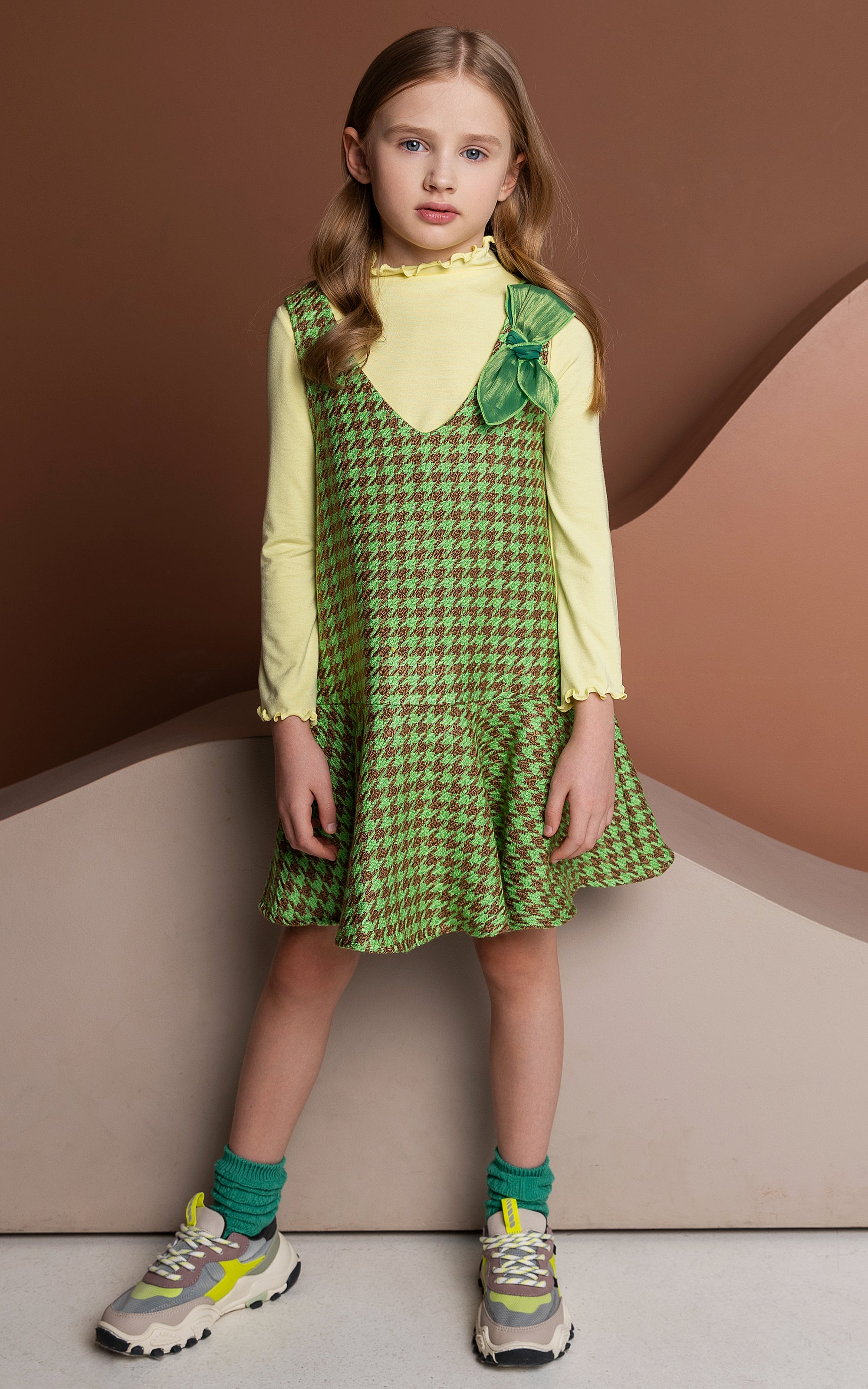 Yeşil Kaşe Elbise ve Kombin Bluzü
