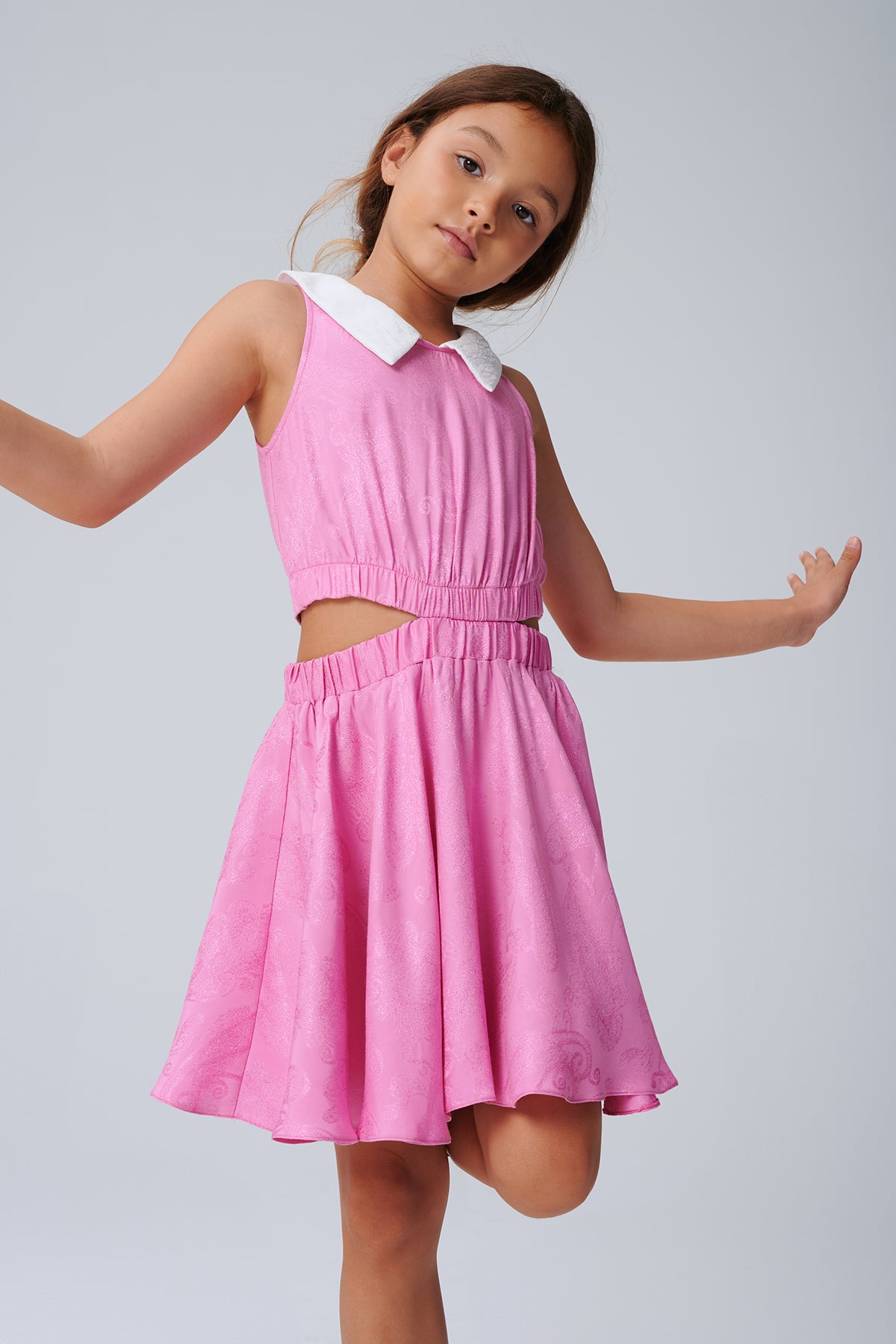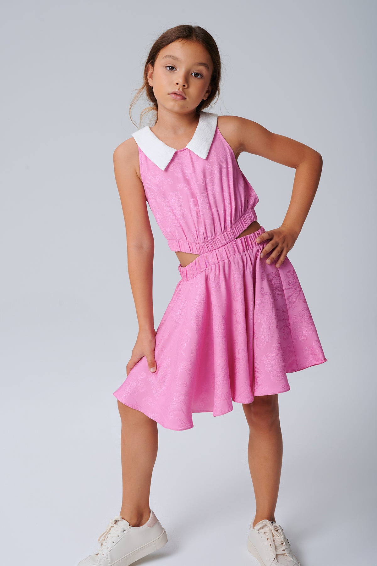 CUT OUT BEL DETAYLI PEMBE ELBİSE