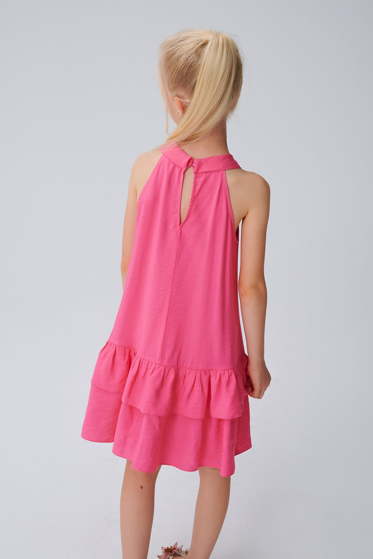 PEMBE HALTER YAKA PARTİ ELBİSESİ