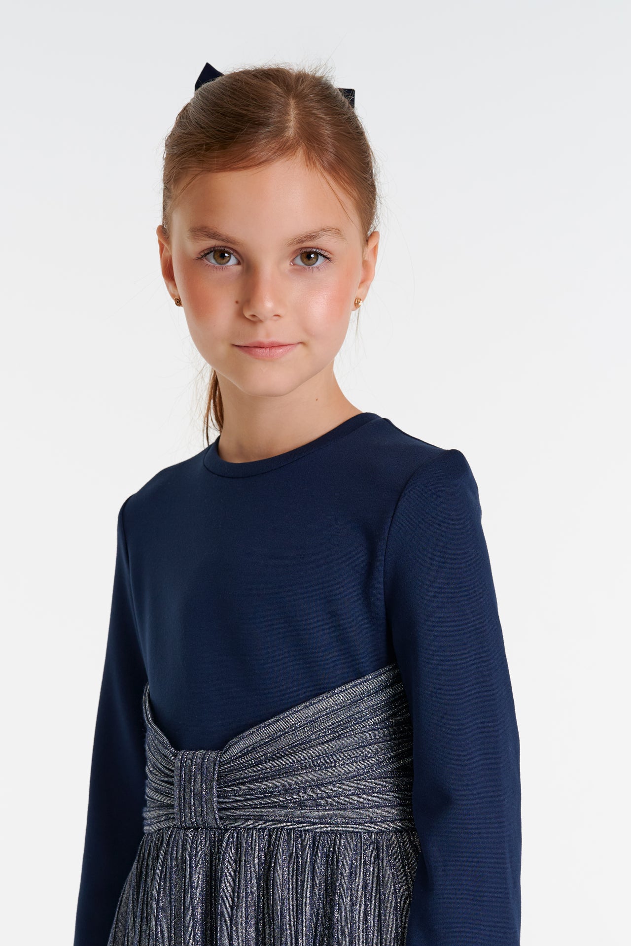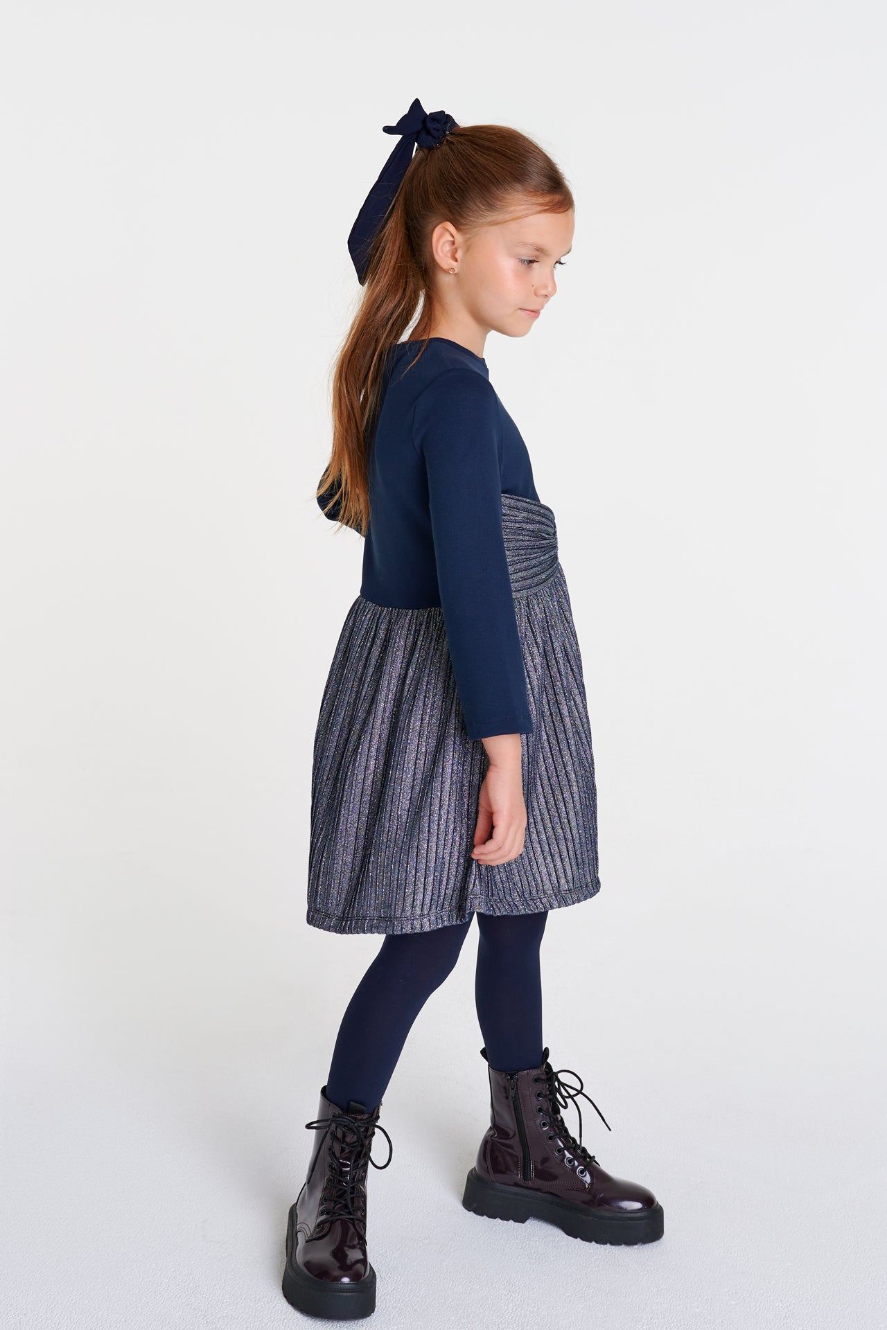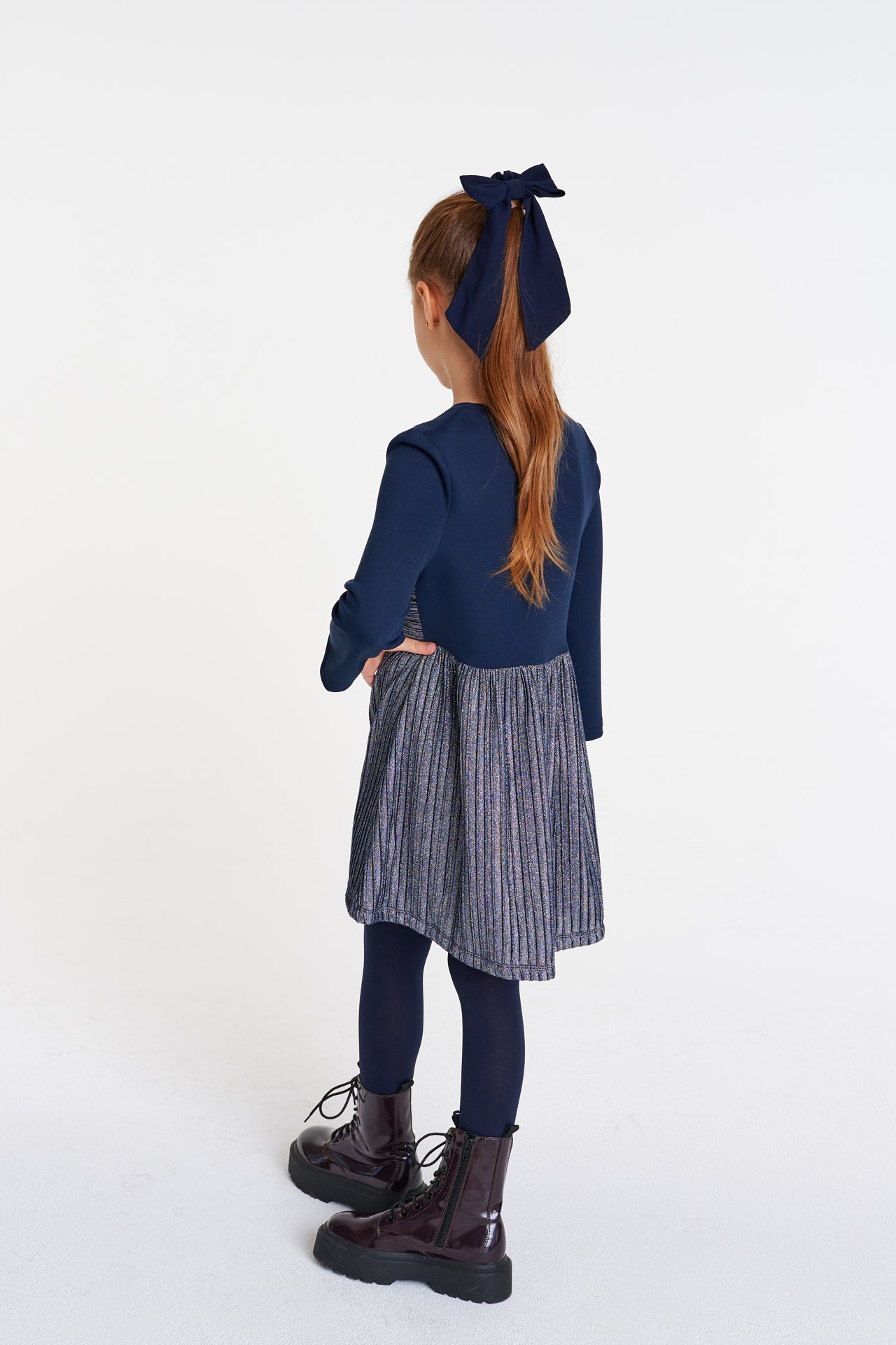 Üstü Örme Esnek Kumaştan Alt Kısmı Metalik Pileli Gümüş Varaklı Kumaştan Üretilmiştir. Astarsızdır.