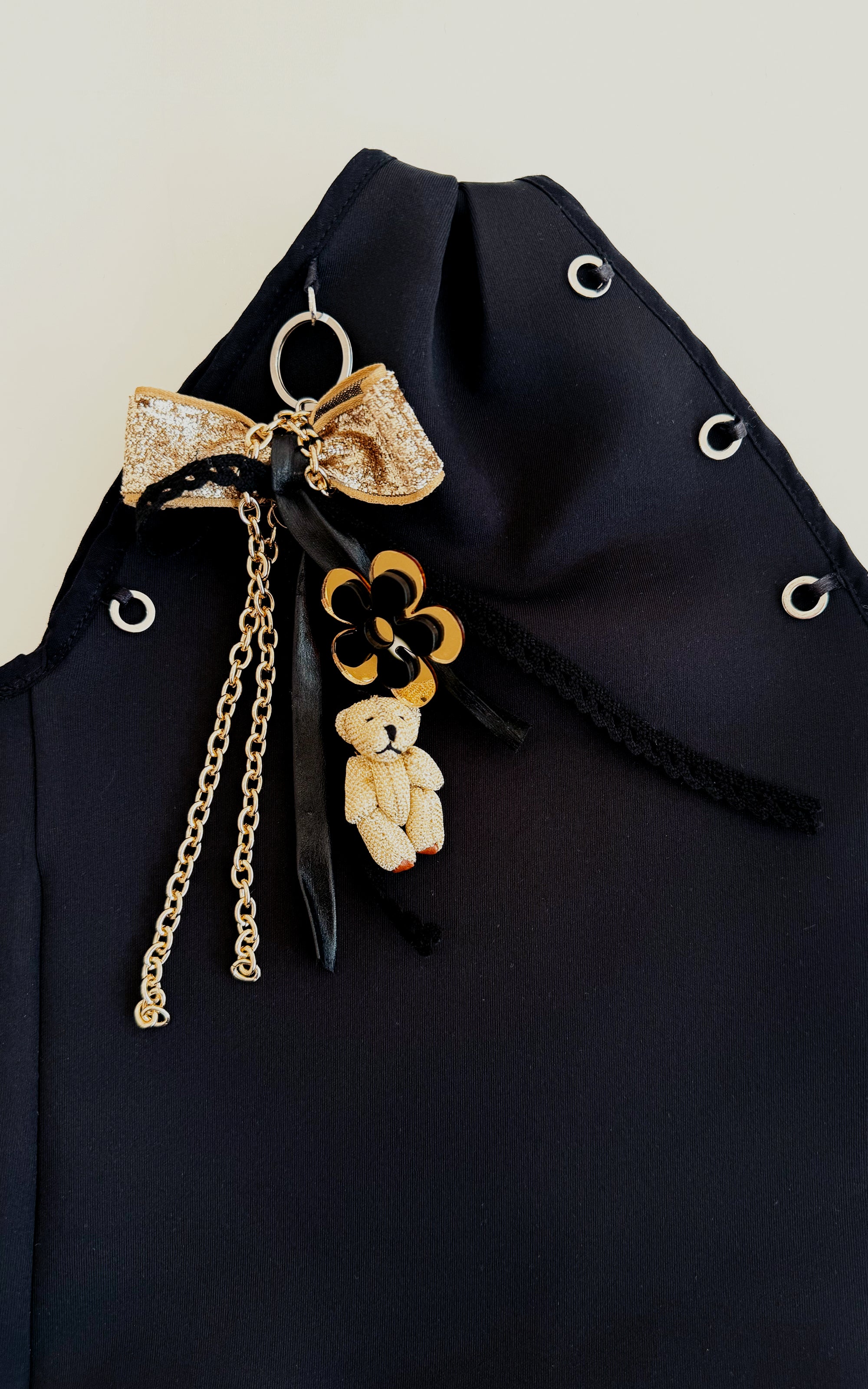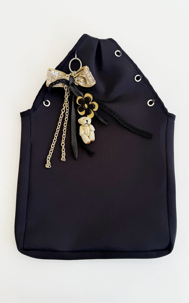 Gold Ayıcık ve Fiyonklu Charm Siyah Çanta