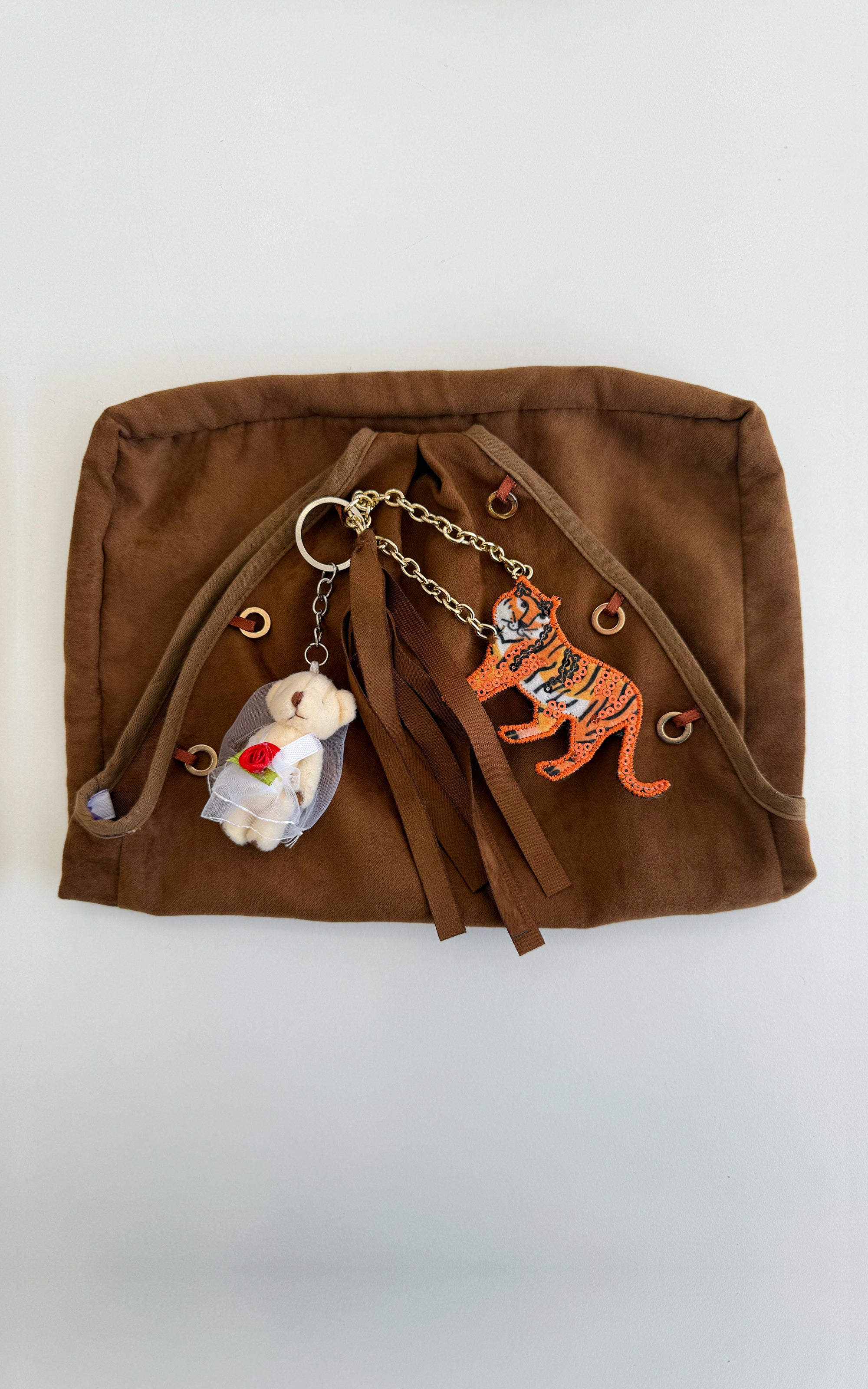 Kaplan ve Ayıcıklı Charm Kahverengi Çanta