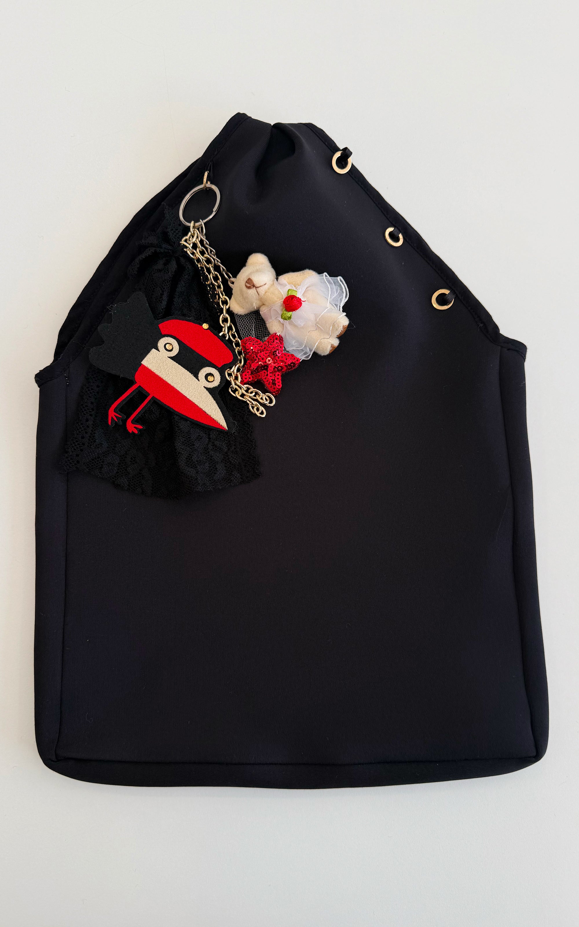 BGL0002 Kuş ve Ayıcıklı Charm Siyah Çanta