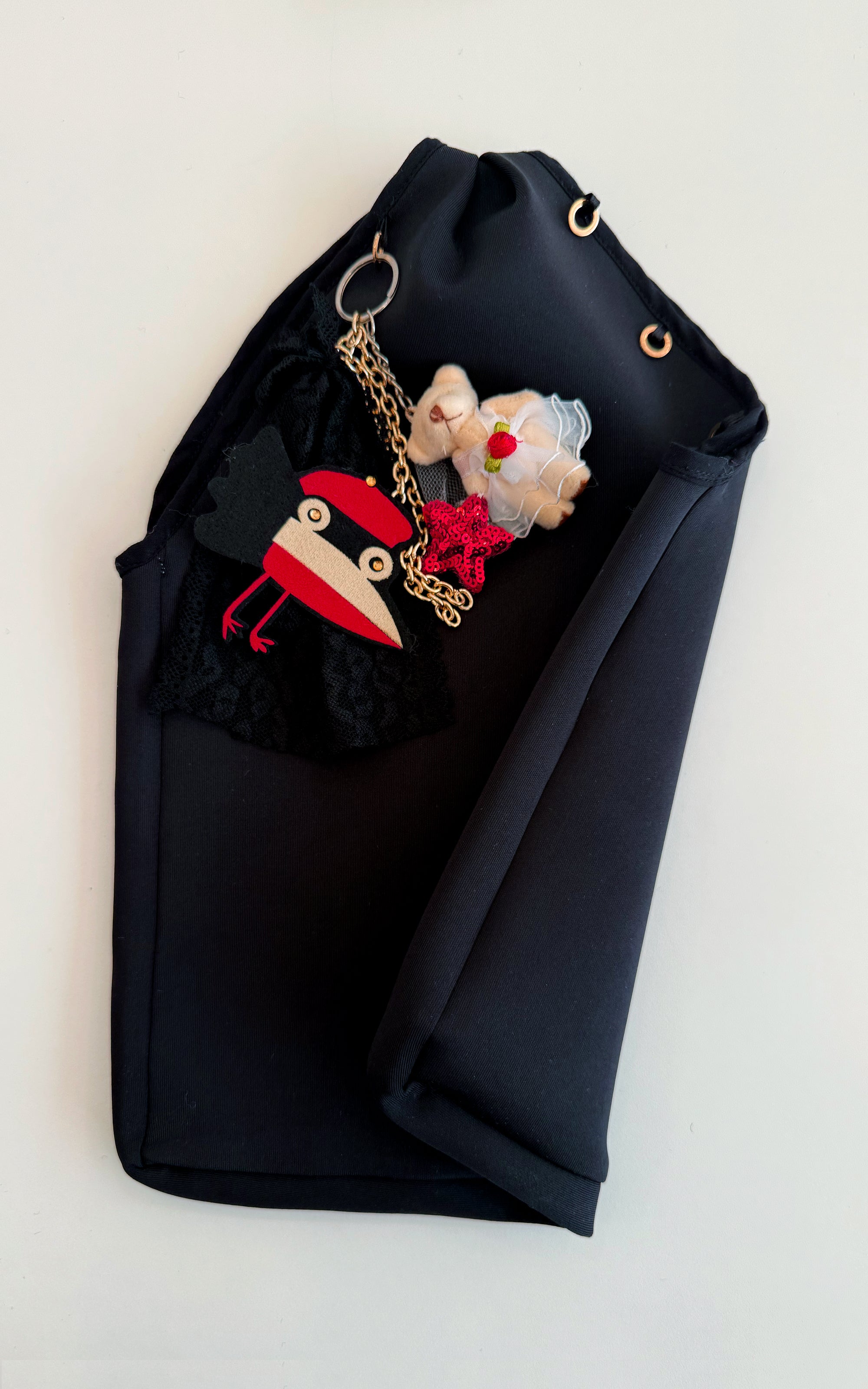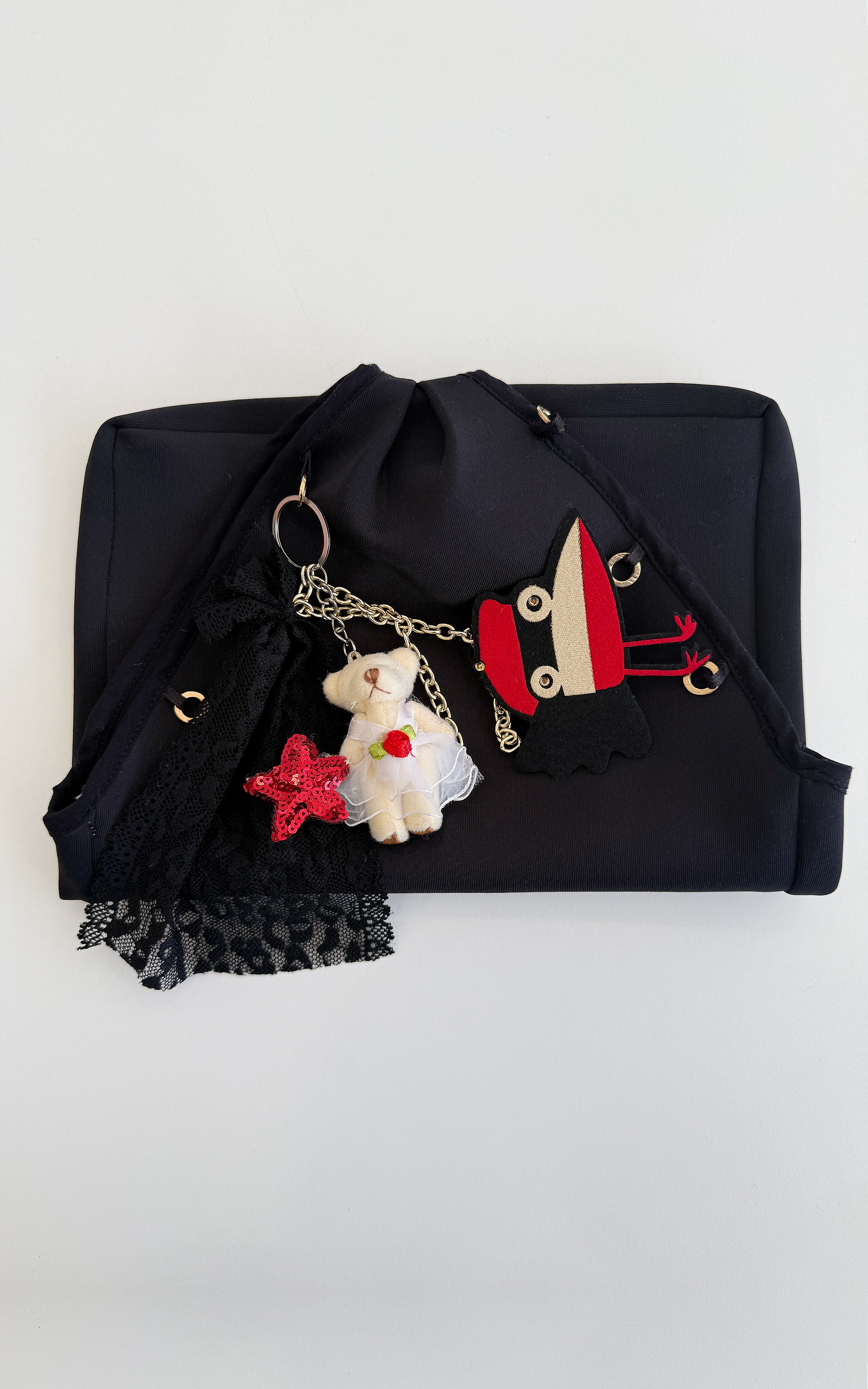 Kuş ve Ayıcıklı Charm Siyah Çanta