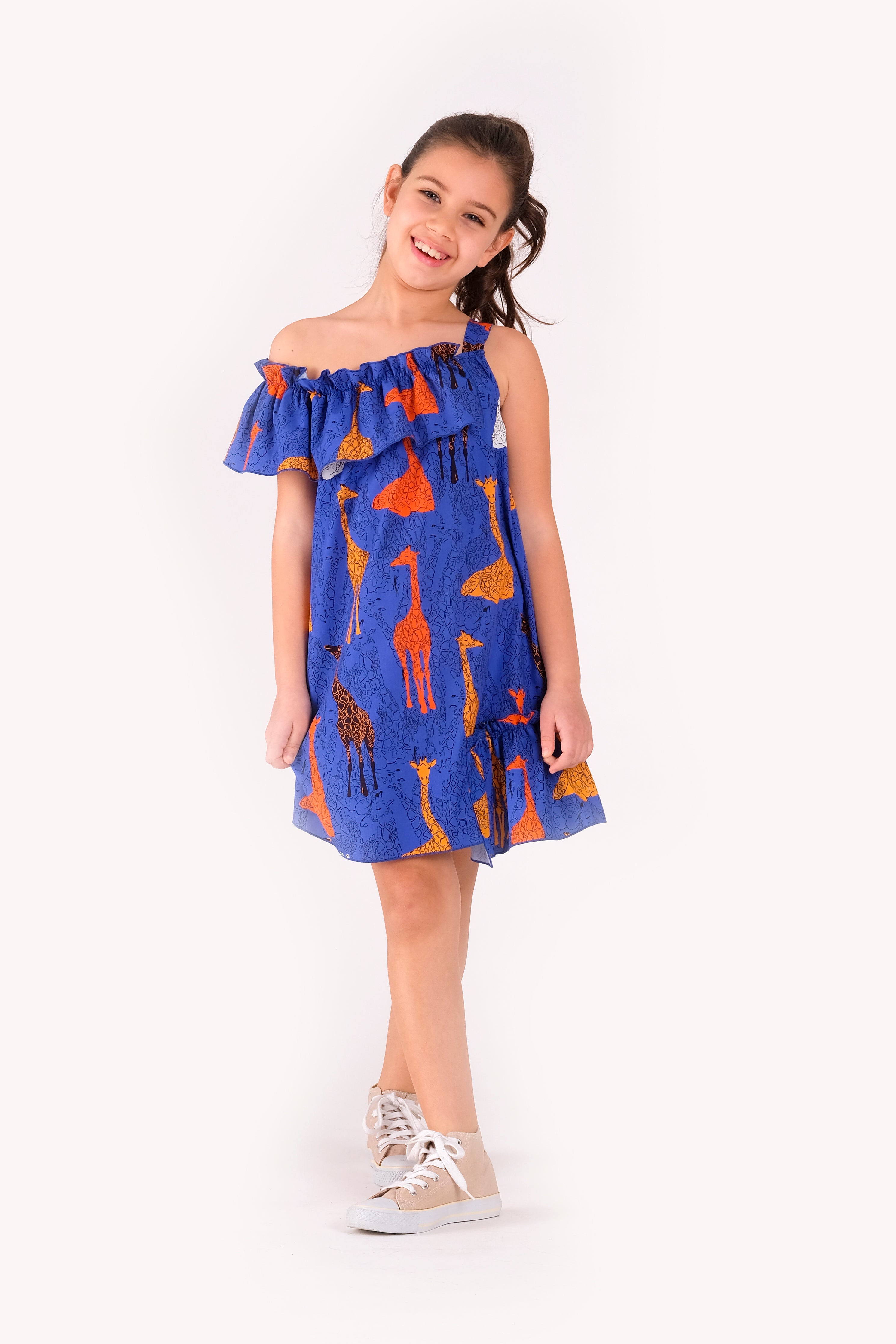 Tek omuz şıklığı ile hem rahat, hem zürafa deseni ile eğlenceli ve yüzde yüz pamuk bir SheShe elbisesi.