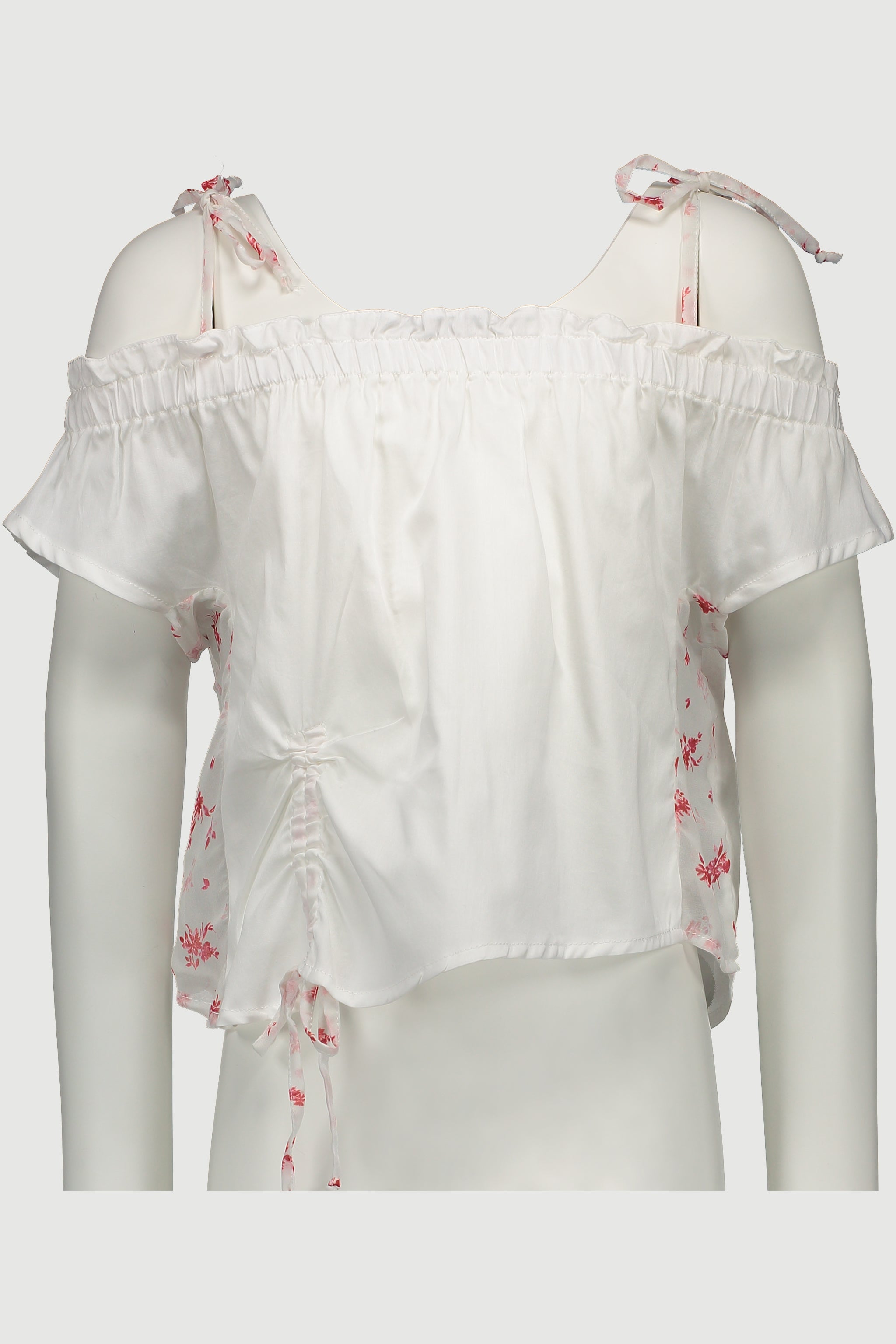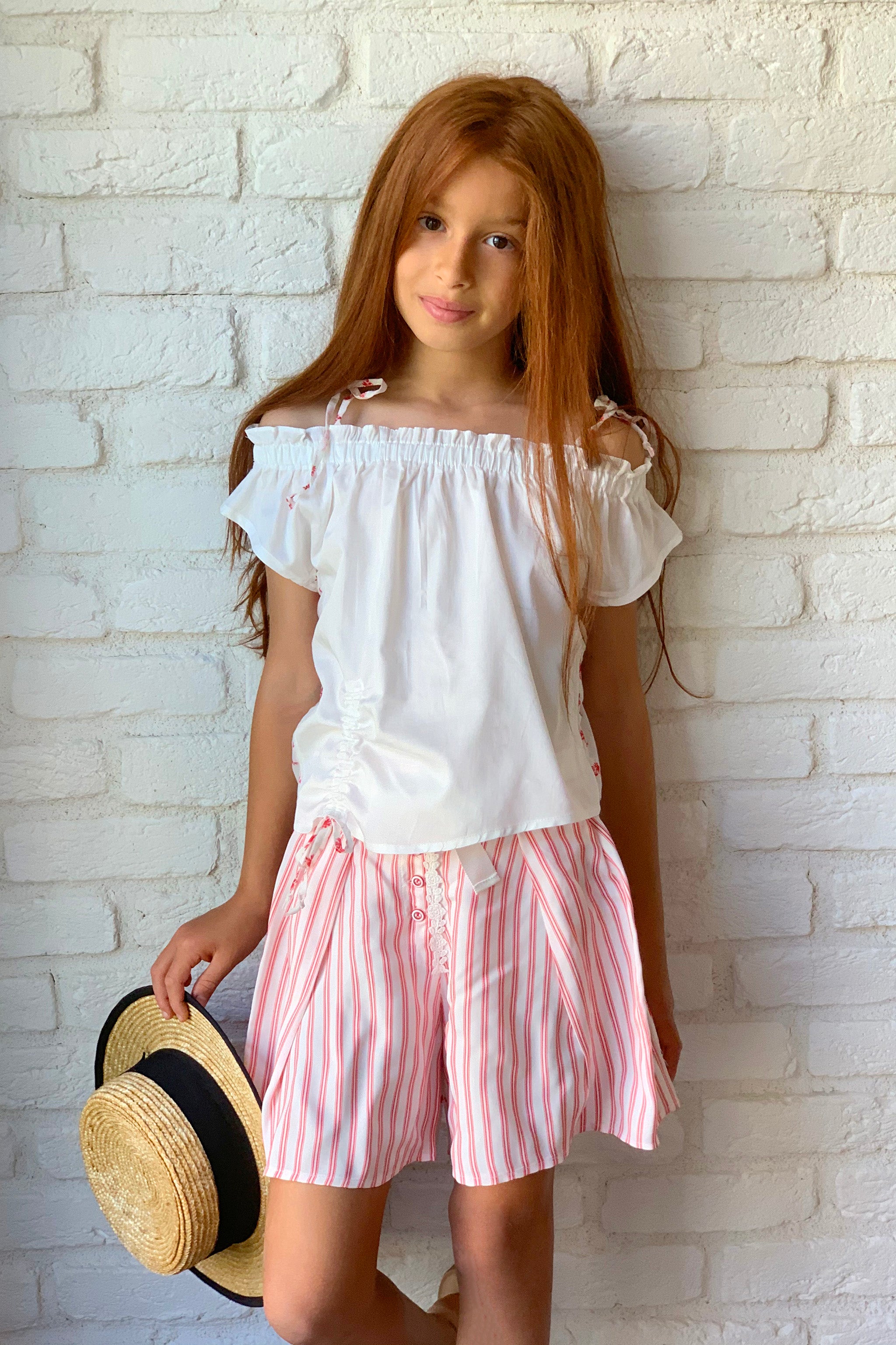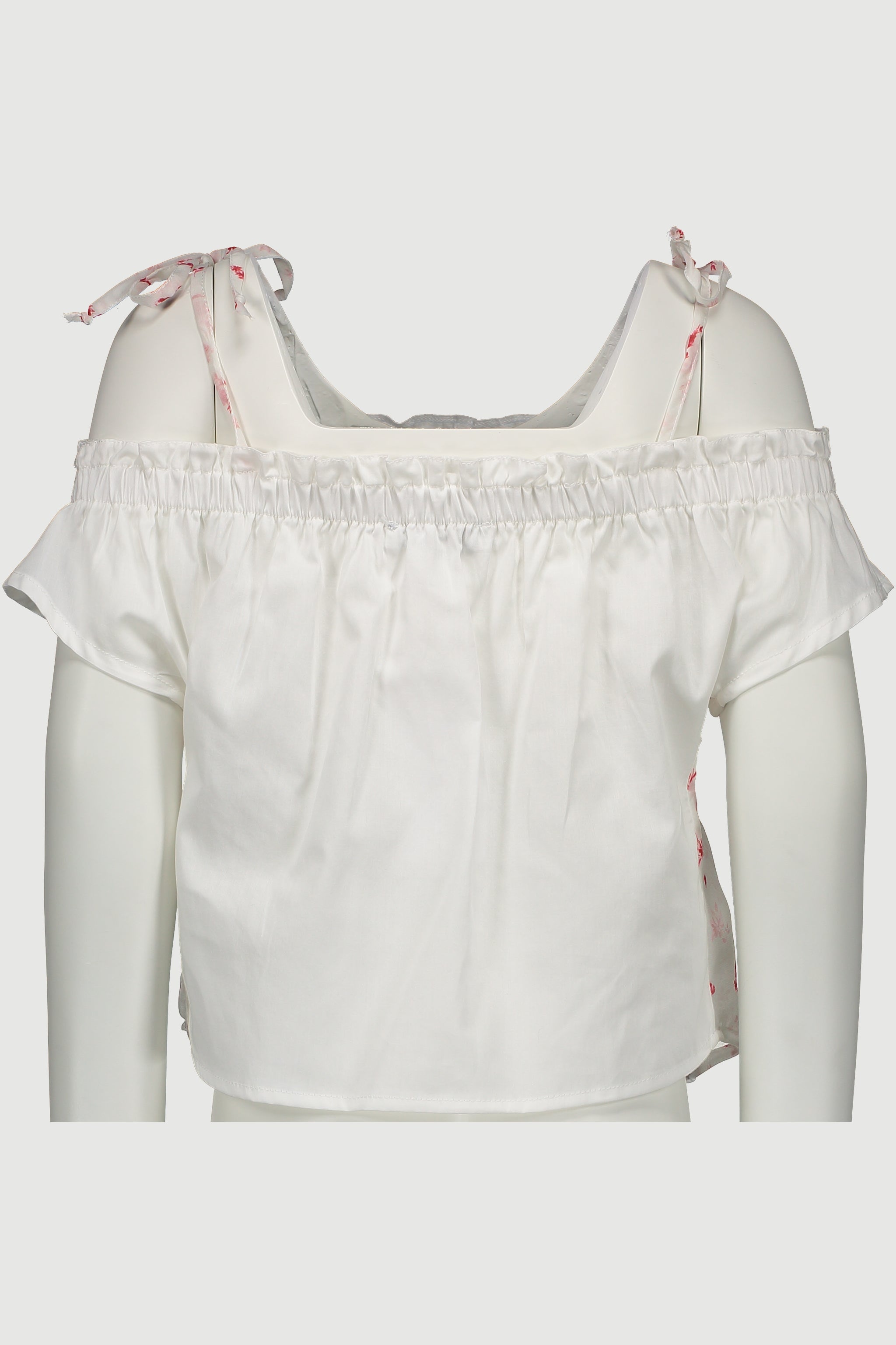 Pamuk kumaşın rahatlığı, beyazın güzelliği ve küçük kırmızı çiçek desen detayları ile harika bir SheShe blüzu.
