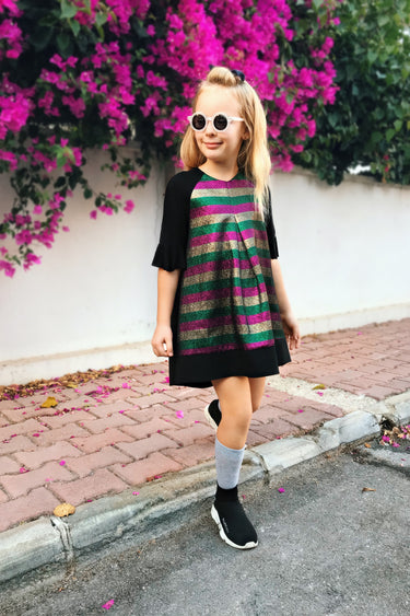 Kışa en çok yakışan renklerin, çizgili versiyonları SheShe'nin özel günler için tasarladığı jakar elbisesinde.
