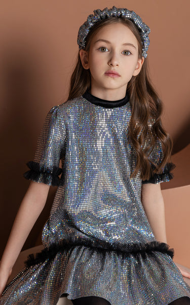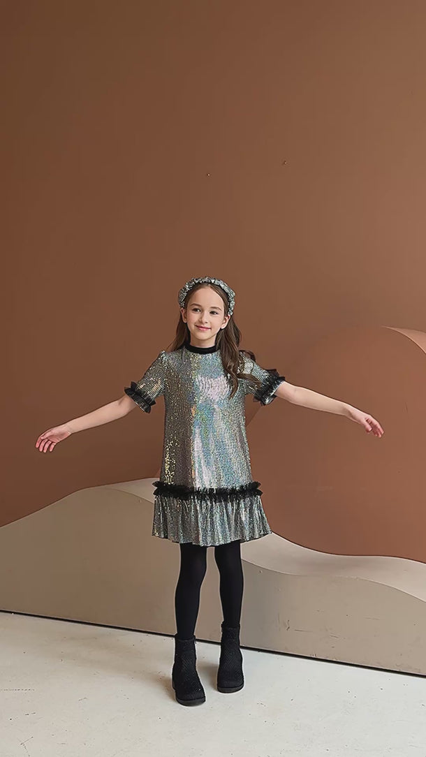 Parlak dokulu kumaştan tasarlanmış ve üretilmiştir. Etek ucu ve kol ucundaki detaylar tül fırfırdır.