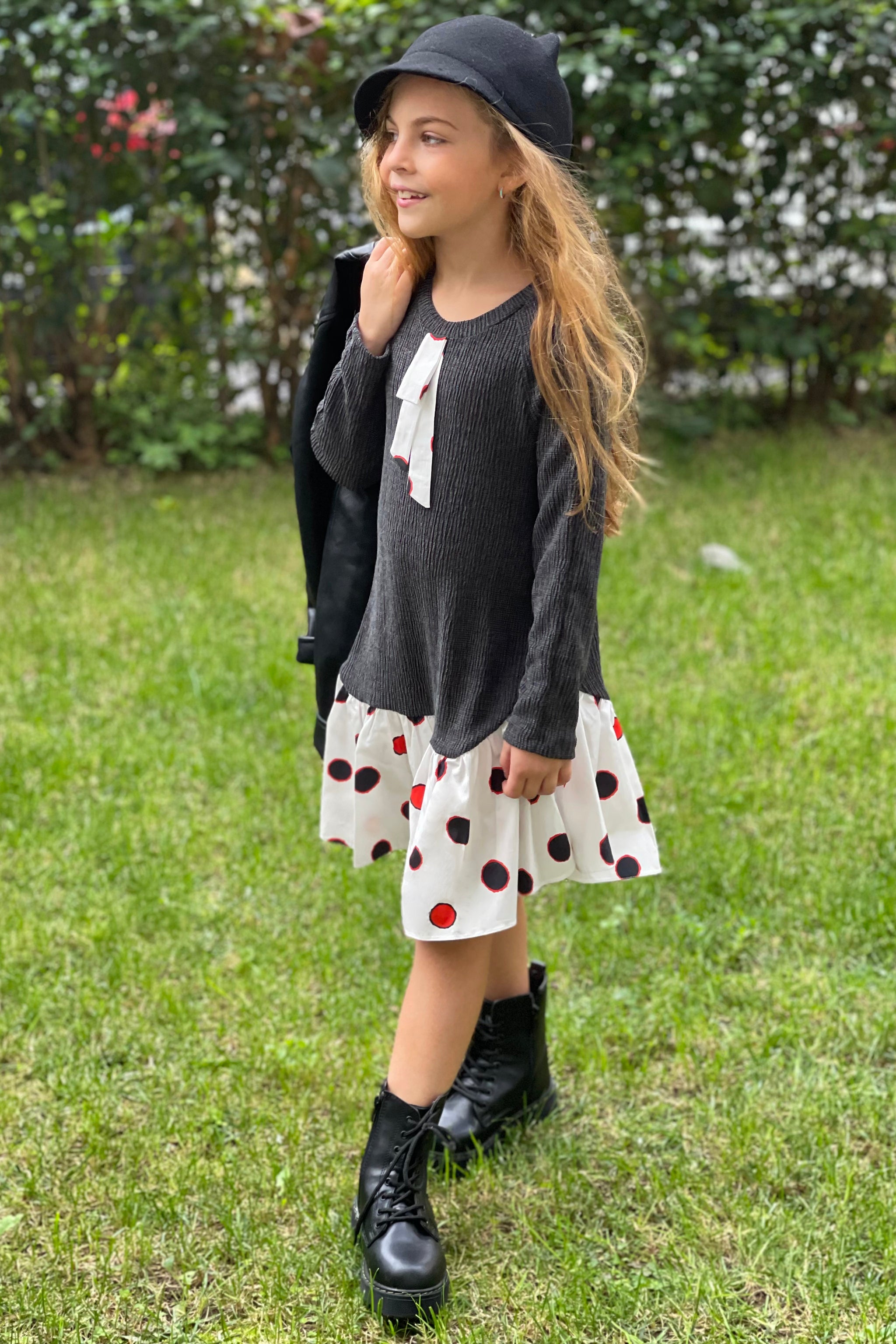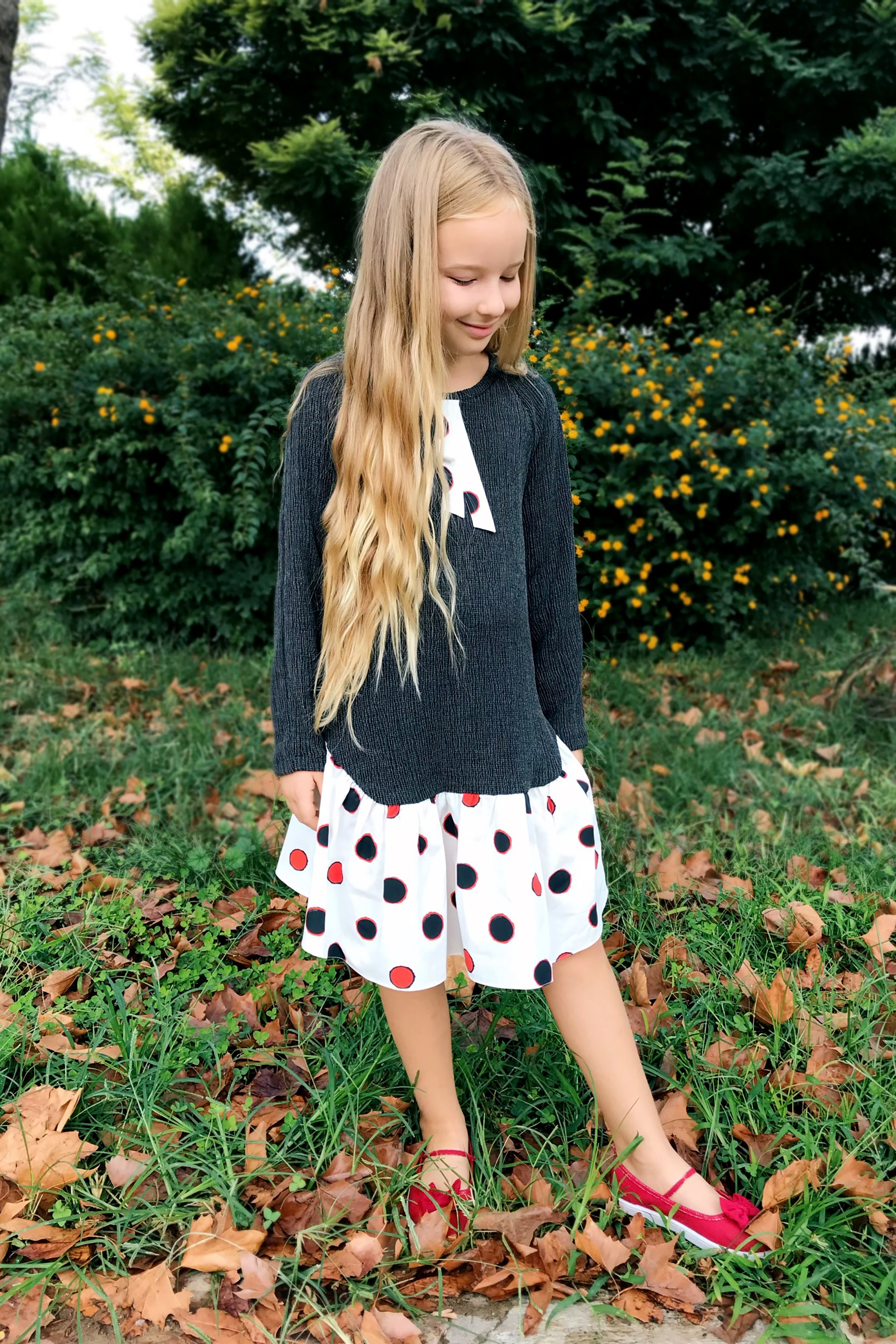 Asil gri tonu, yumuşacık dokusu ve tabii ki eğlenceli benekleri ile bu güzel SheShe elbiseyi kim giymek istemez ki?
