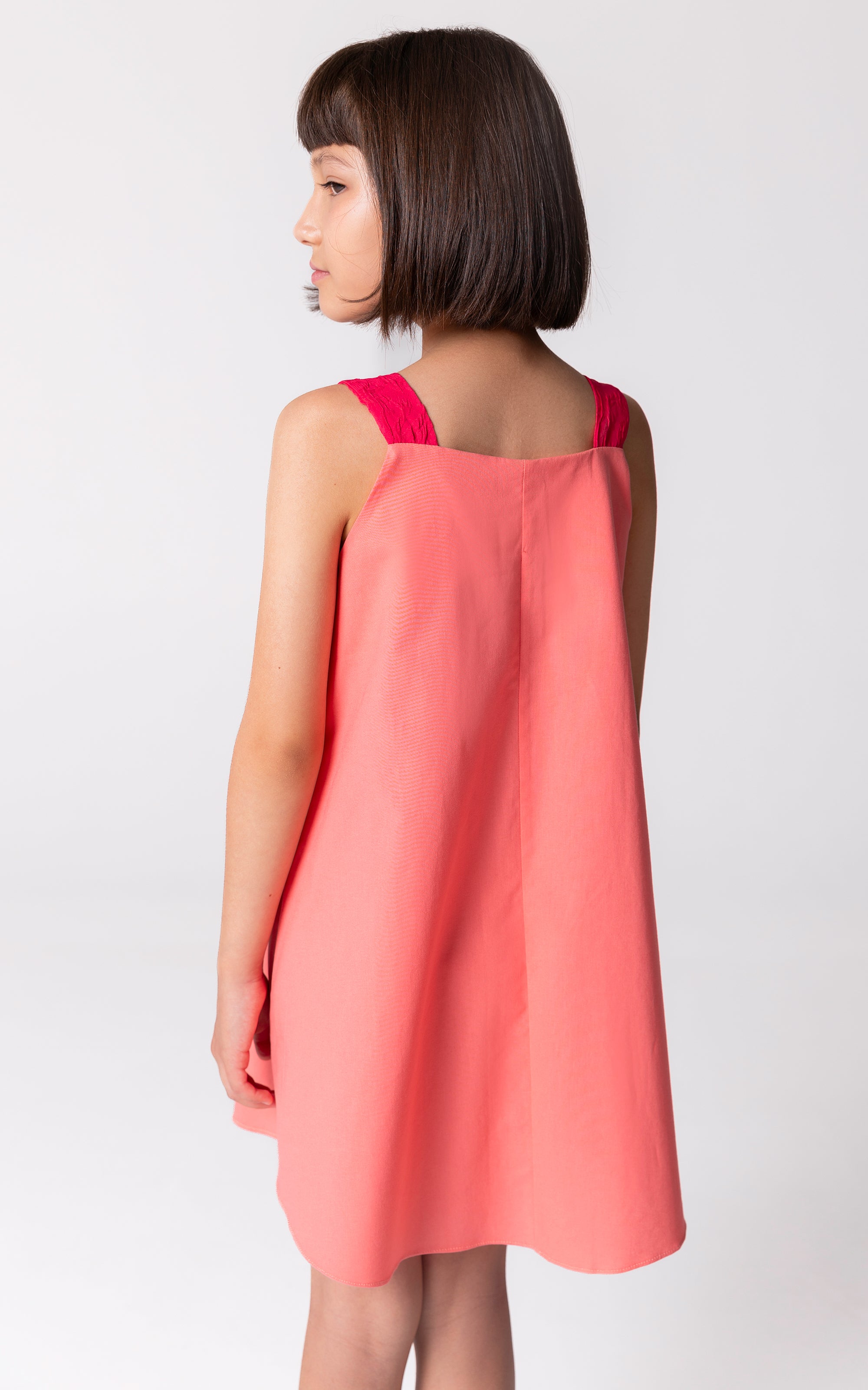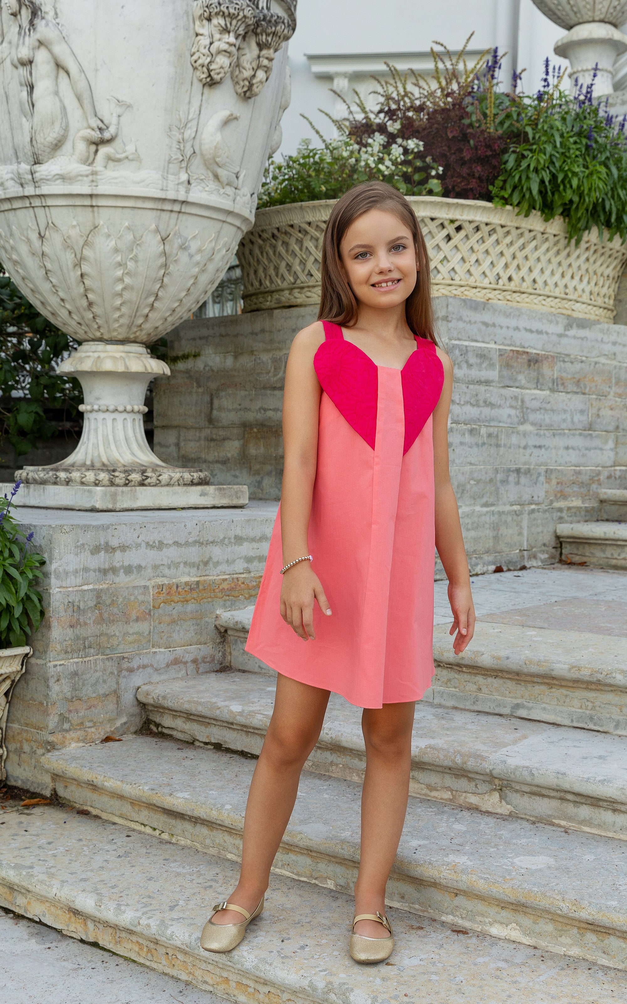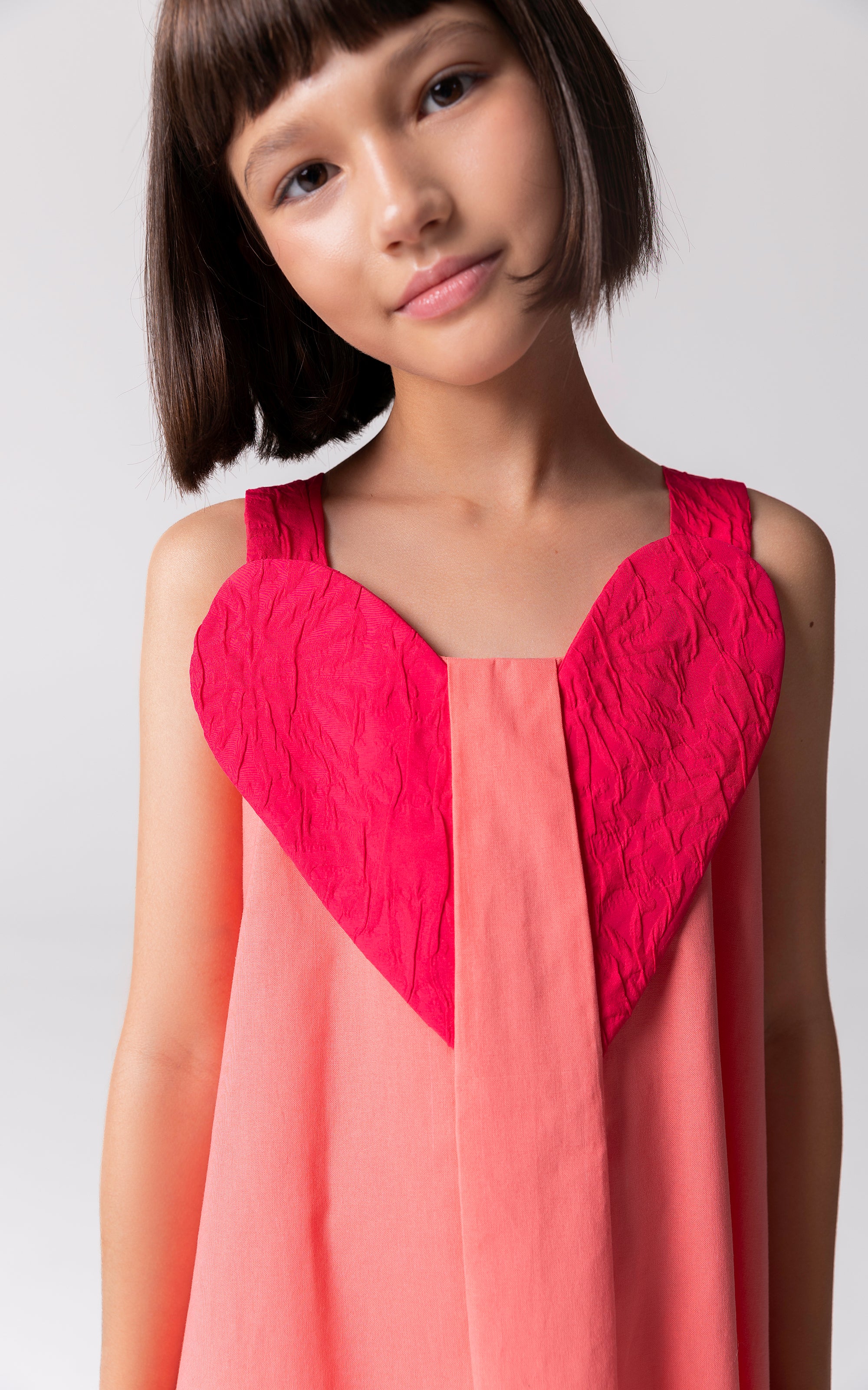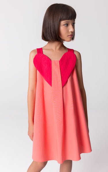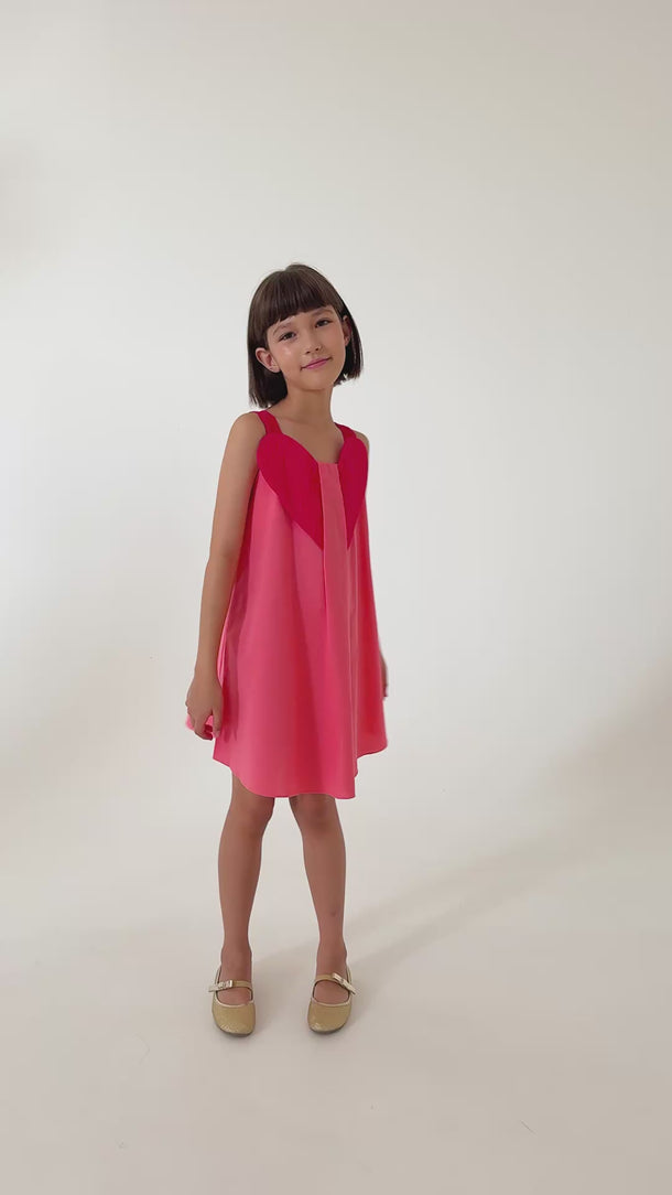 Pembenin iki tonunun uyumlu bir şekilde kullanıldığı bu yüzde yüz pamuk askılı yaz elbisesi, göğsündeki 3 boyutlu büyük kalp detayıyla dikkat çekiyor. Orta boy ve günlük kullanıma uygun bu elbise, hem rahat hem de şık bir seçenek sunuyor. Yazın vazgeçilmez bir parçası olacak bu elbise, özel detaylarıyla her anı neşelendiriyor.