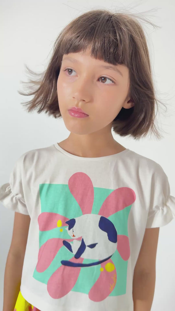Kısa kollu ve %100 pamuklu bu rahat tişört, göğsündeki büyük çiçek baskısı ile dikkat çekici bir tarz sunuyor.